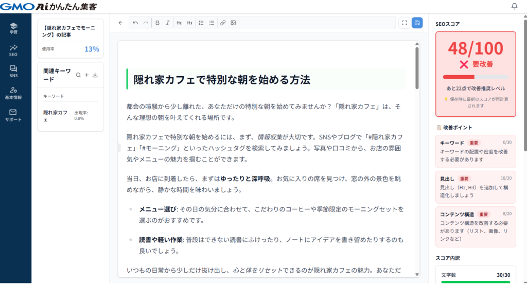 また、右側に表示されている「改善ポイント」を参考に修正することも可能です。