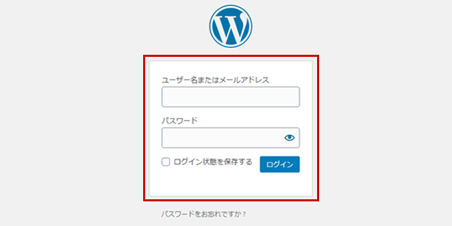 WordPressのログイン画面が表示されるので、WordPressインストール時に入力したユーザー情報とパスワードを入力してログインします。