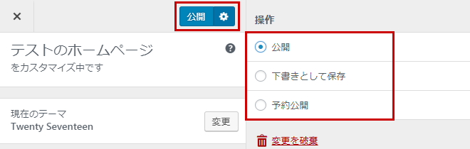 設定ボタンを押すと、「公開」「下書きとして保存」「予約公開(日時を指定して公開)」を選択することもできます。