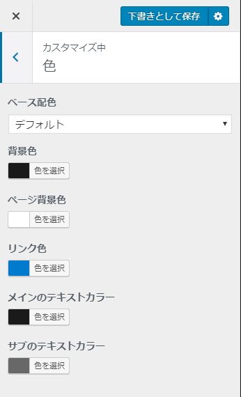 「背景色」や「メインのテキストカラー」など各項目の「色を選択」をクリックし好きな色を選択します。