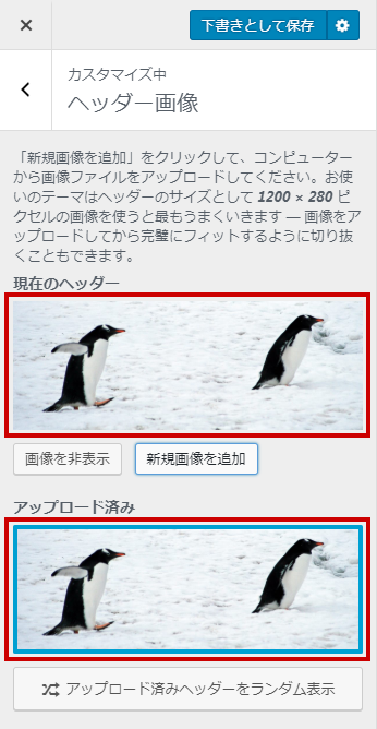 「ヘッダー画像」に登録した画像が、プレビューに表示されます。