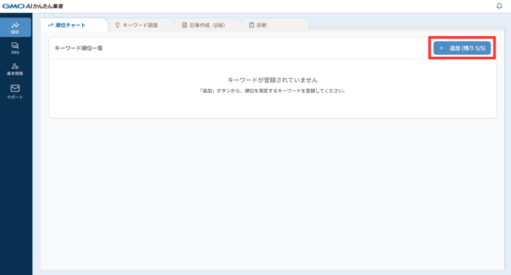 「順位チャート」を開き、青色の「追加」ボタンをクリックします。