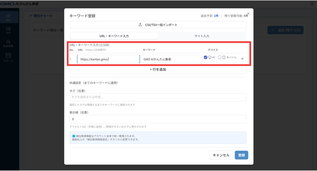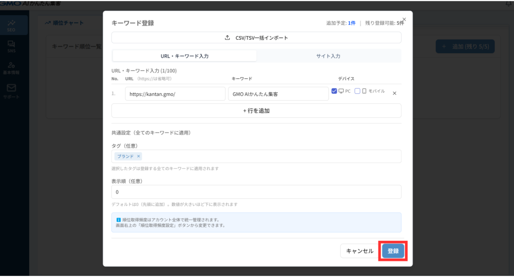 【順位チェック】キーワードを登録しよう