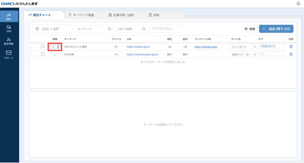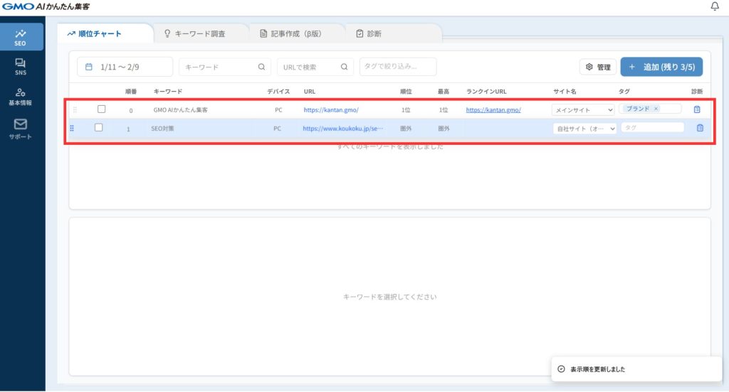 【順位チェック】キーワード順番の並び替え