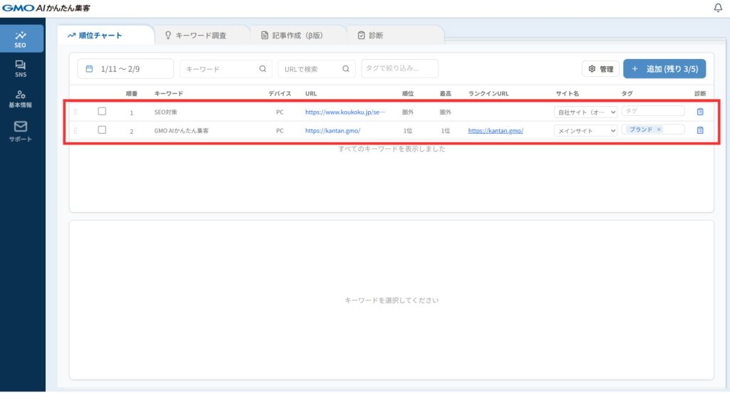 本ミッションは「キーワードを登録しよう」で操作した画面の続きからの解説になります。