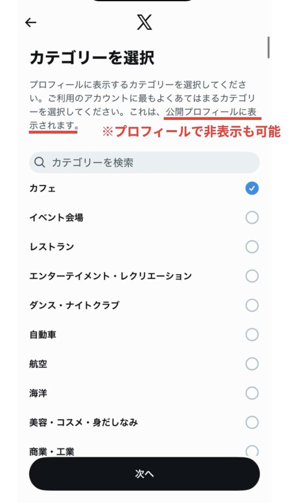 カテゴリはプロフィールに表示するかどうか選べるため、ブランド感を出したければ表示、柔らかい印象にしたければ非表示も選択できます。