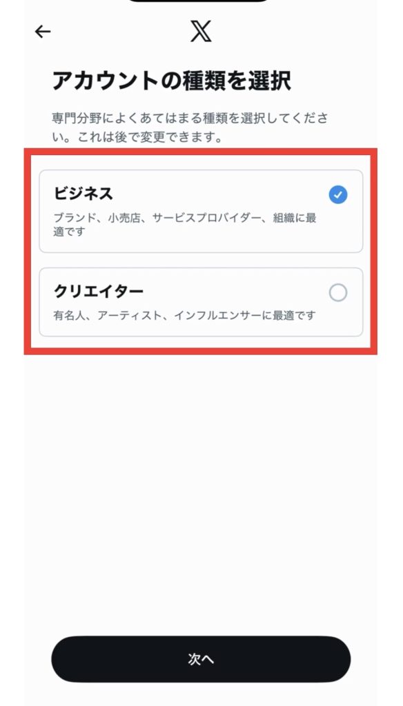 個人で情報発信やファンづくりをしたい人はクリエイター寄り、商品・サービス紹介や集客をしたい人はビジネス寄り、といったイメージです。どちらを選んでも、後から自由に変更できます。
