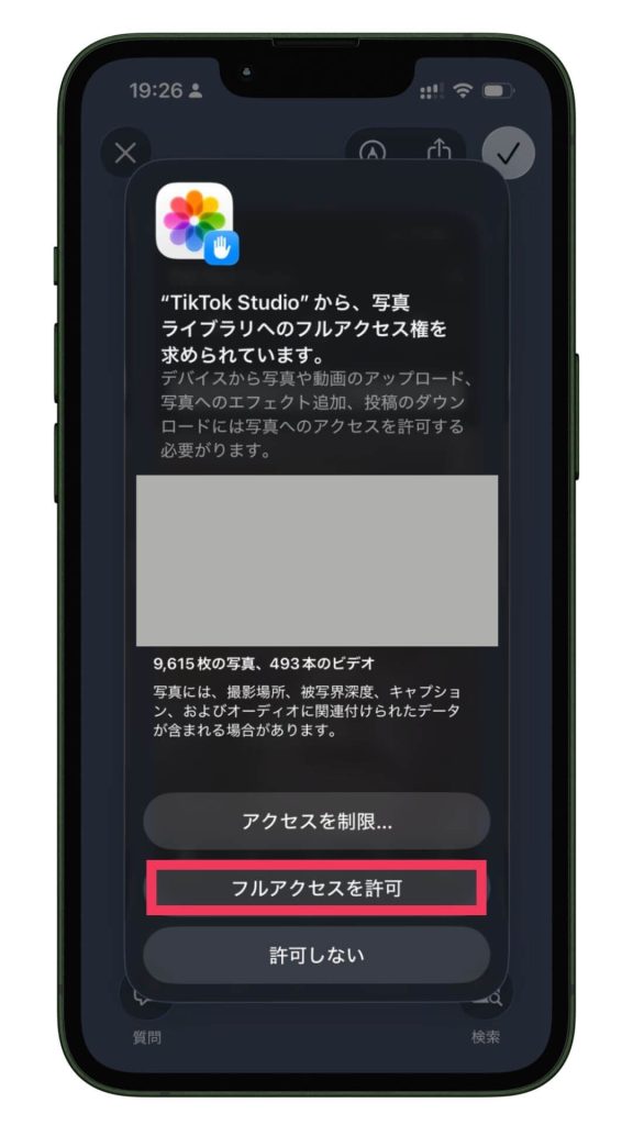 6.権限確認(カメラ・マイク・写真フォルダ):撮影や素材読み込みに必要なアクセス許可のポップアップが出ます。後でまとめて許可でもOKですが、許可が無いとHome到達後に一部のボタンがグレーアウトすることがあります。