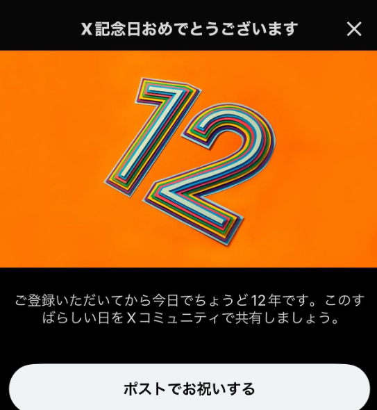 アカウントを作成した日から1年経つと「1周年」、2年経つと「2周年」といった形で、毎年の「X記念日」を教えてくれます。自分のXアカウントの“歴史”を振り返るきっかけになることが特徴です。