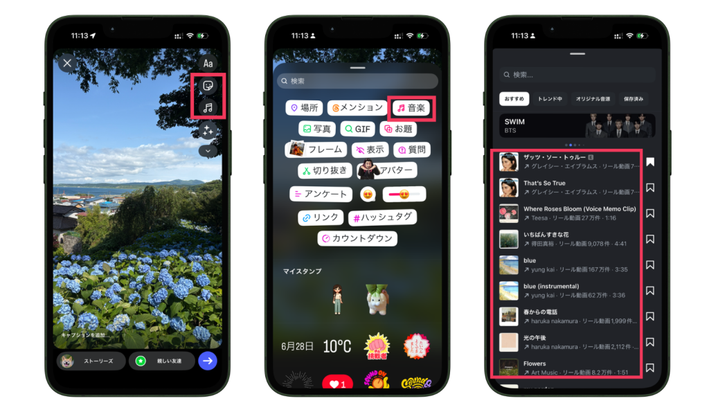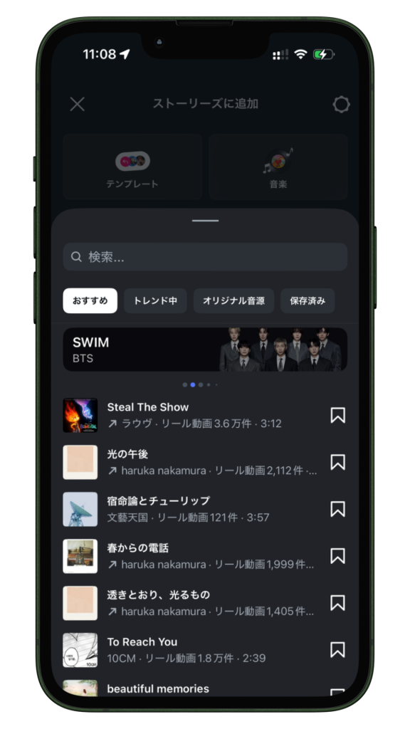 ストーリーに音源を追加する方法