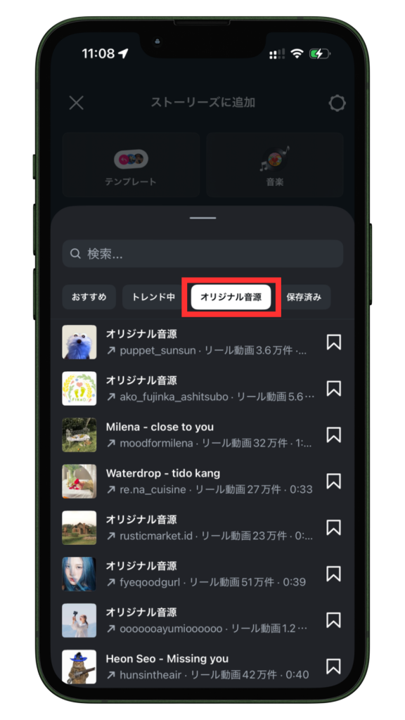 既存の投稿で使われている音源を使う方法