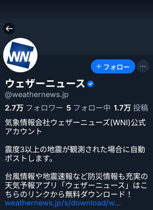 気象情報サービスのウェザーニュースは、2026年現在で約2.7万人のフォロワーを持つ公式アカウントを運営しています。天気予報、台風情報、気象ニュースなどをリアルタイムで投稿しており、震度3以上の地震が観測された場合は自動でポストされる仕組みも導入しています。速報性の高い情報発信に適したプラットフォームとして活用されており、防災情報の提供にも力を入れています。XやYouTubeなど他のプラットフォームと連携しながら、多角的な情報発信を実現しています。