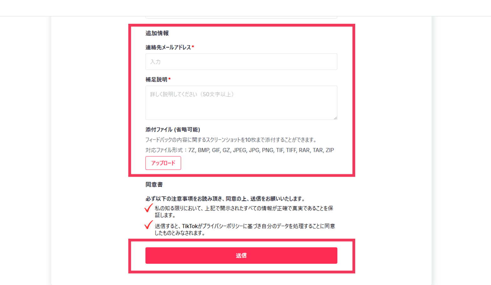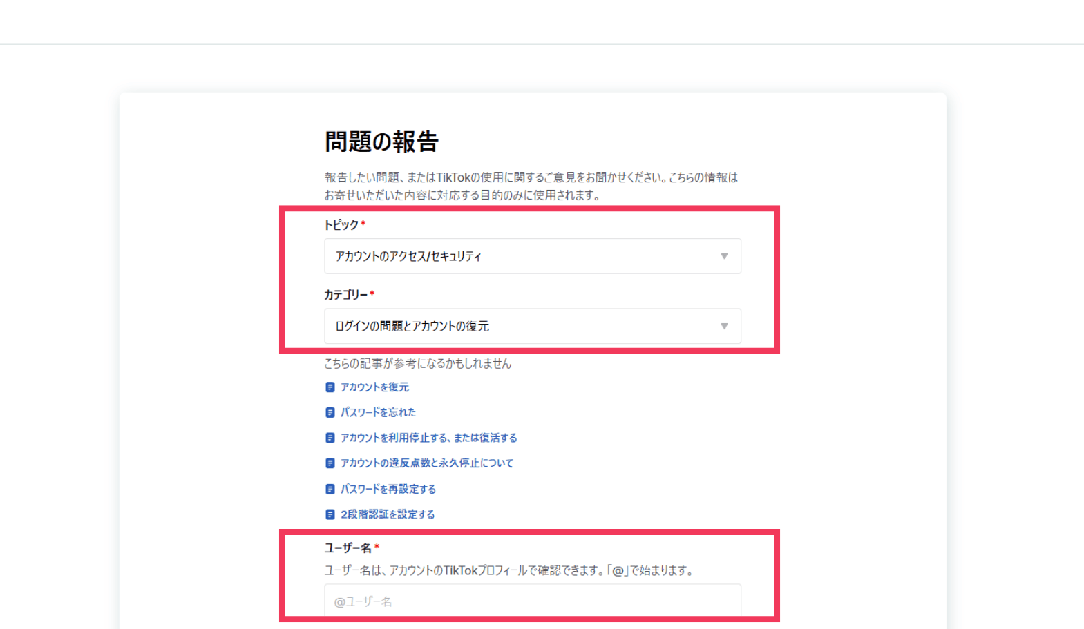 以下は、TikTok公式サポートが提供するオンライン報告フォームです