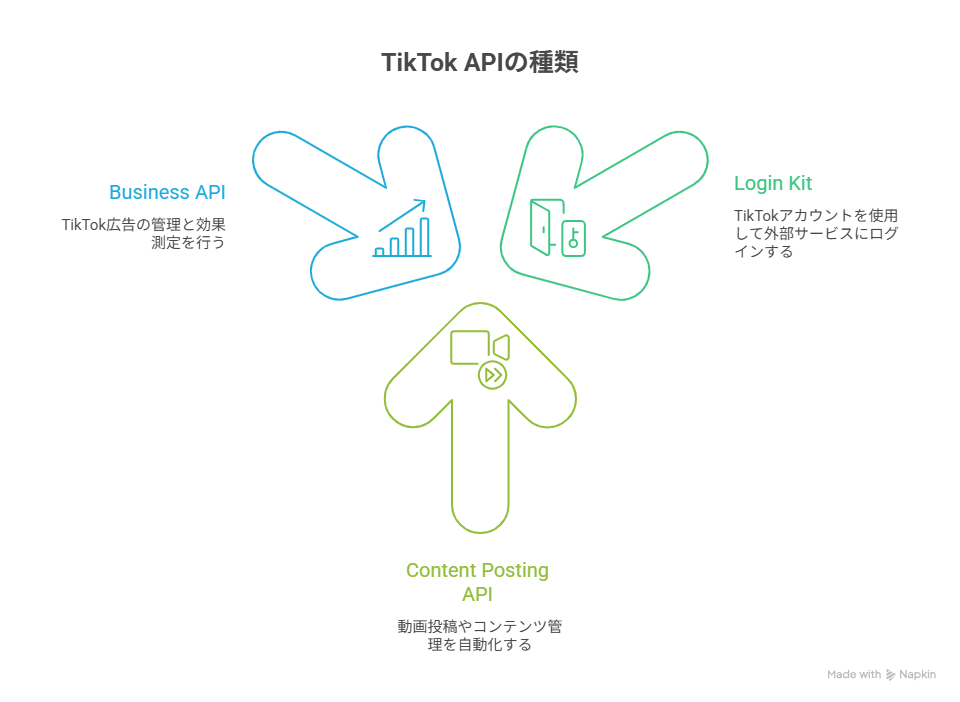 TikTok APIには、用途ごとにいくつかの種類が用意されています。
