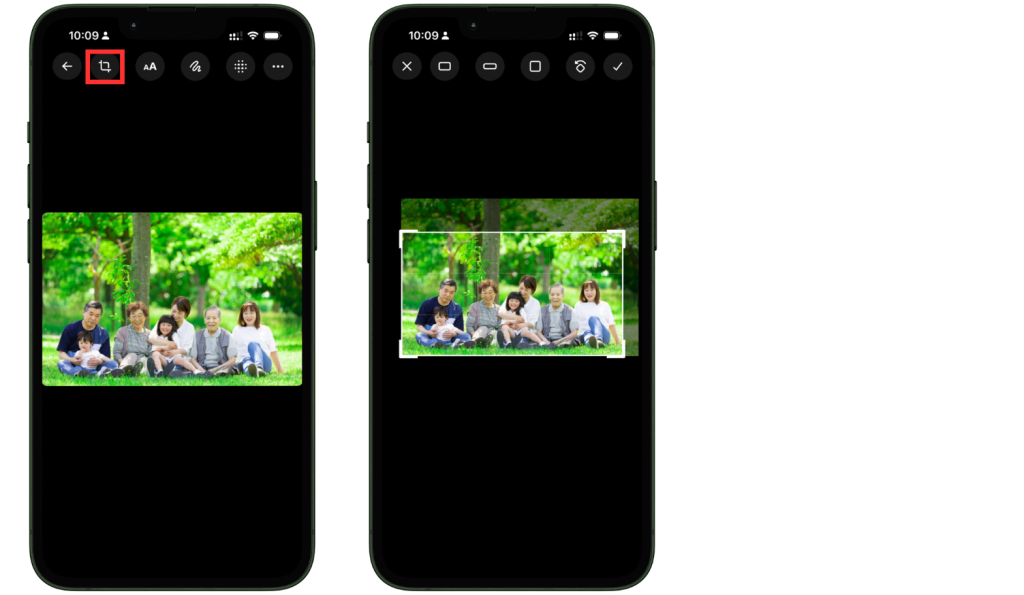 トリミング機能では、画像の中で見せたい範囲だけを切り取って構図を整えることができます。編集画面を開いたあとにトリミング機能を選び、枠を調整して保存するだけなので難しくありません。写真だけでなくスクリーンショットでも、見せたい情報だけを残したいときに便利です。
