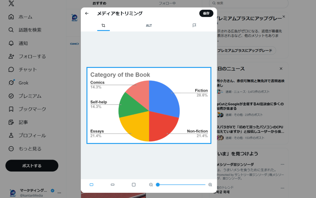 Xの写真エディターでは、投稿前の画像に対して、トリミング、テキスト、手書き、モザイクなどの基本的な加工を加えられます。