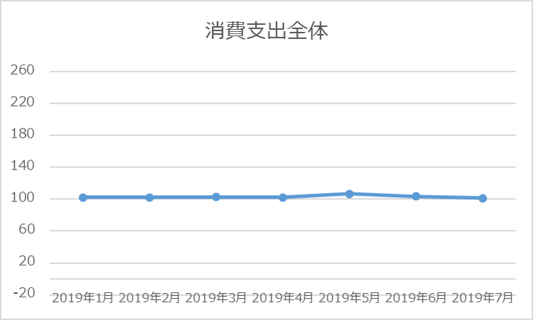 最新で7月までのデータまでしか公開されていないため少々物足りない分析結果ではありますが、支出全体でみた限りではそれほど大きな影響は表れていないようにみえます。