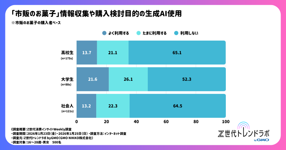 「市販のお菓子」情報収集や購入検討目的の生成AI使用