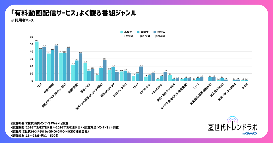 ここで層差が出るのが、社会人の「特定ジャンルの深さ」で、“広く浅く”よりも“刺さる沼があるか”が契約理由になりやすいことがうかがえます。