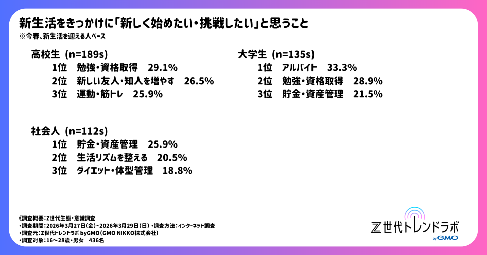 今回の調査を総合してみると、Z世代の新生活への向き合い方は、ライフステージごとに明確な"色"があることがわかります。