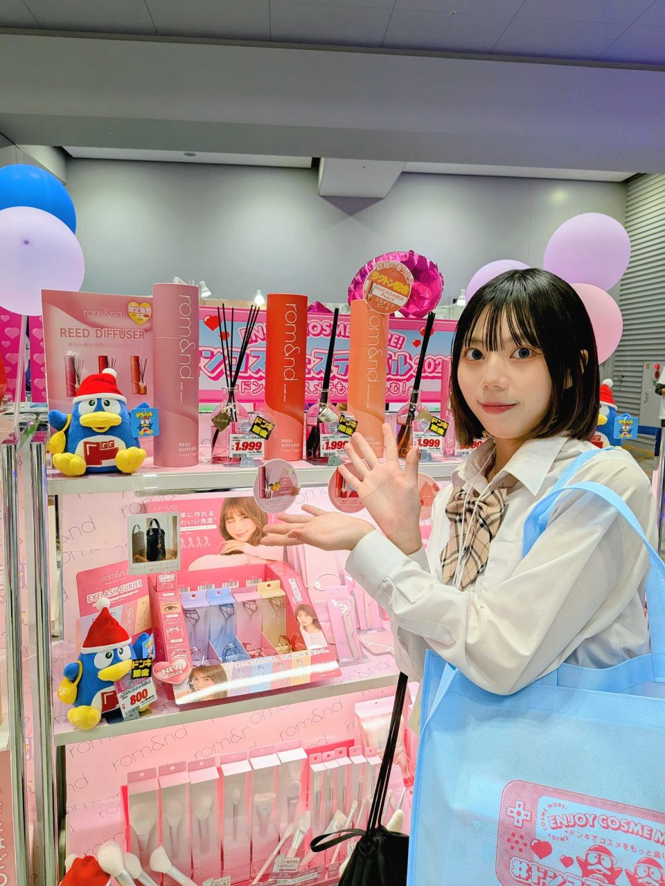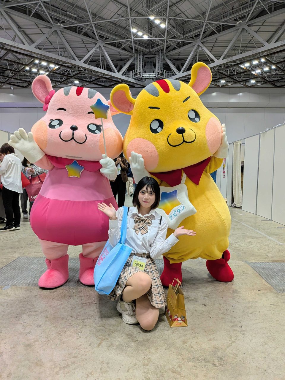 会場に入ってまず目に飛び込んできたのは、ドン・キホーテのマスコットキャラクターたち。ドンペンくん、ドンコちゃん、アピタン、ピアタンが勢ぞろいでお出迎えしてくれました!可愛すぎてすぐに記念写真を撮影。テンションが一気に最高潮に達しました。