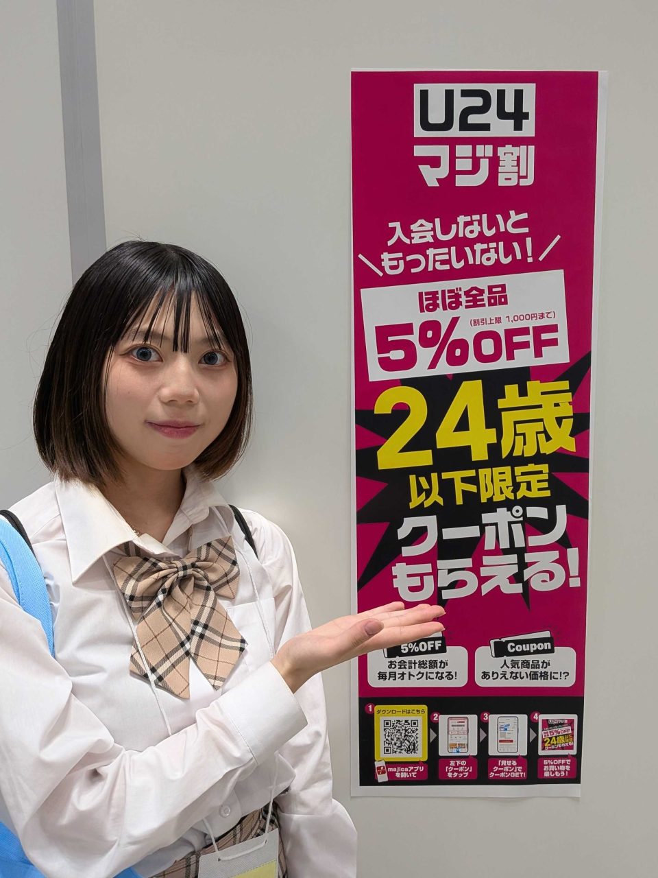 会場内で目に留まったのが「U24マジ割」のポスター。24歳以下はお得なクーポンがもらえたり、お会計が5%引きになったりと、かなり魅力的なサービスのようです。